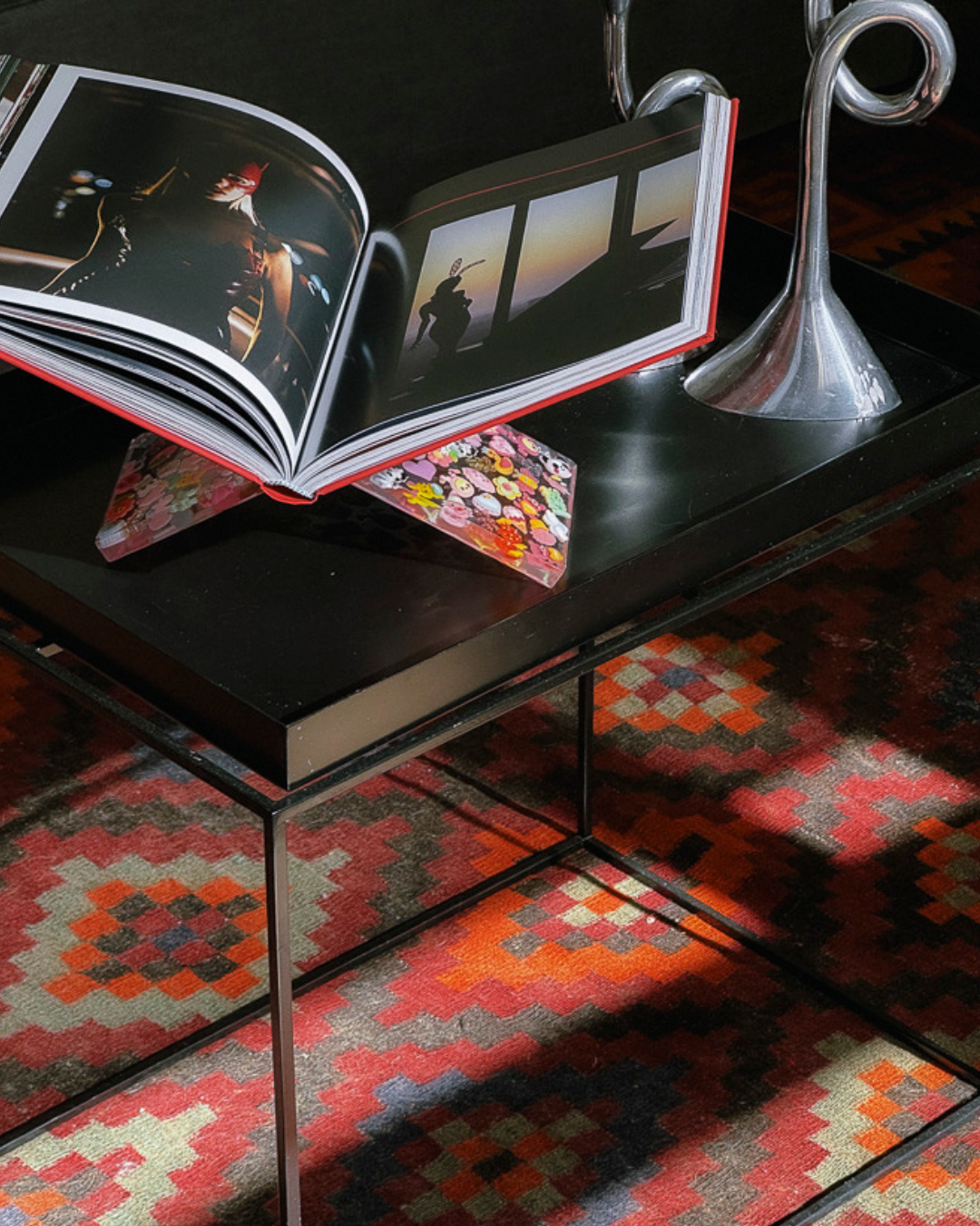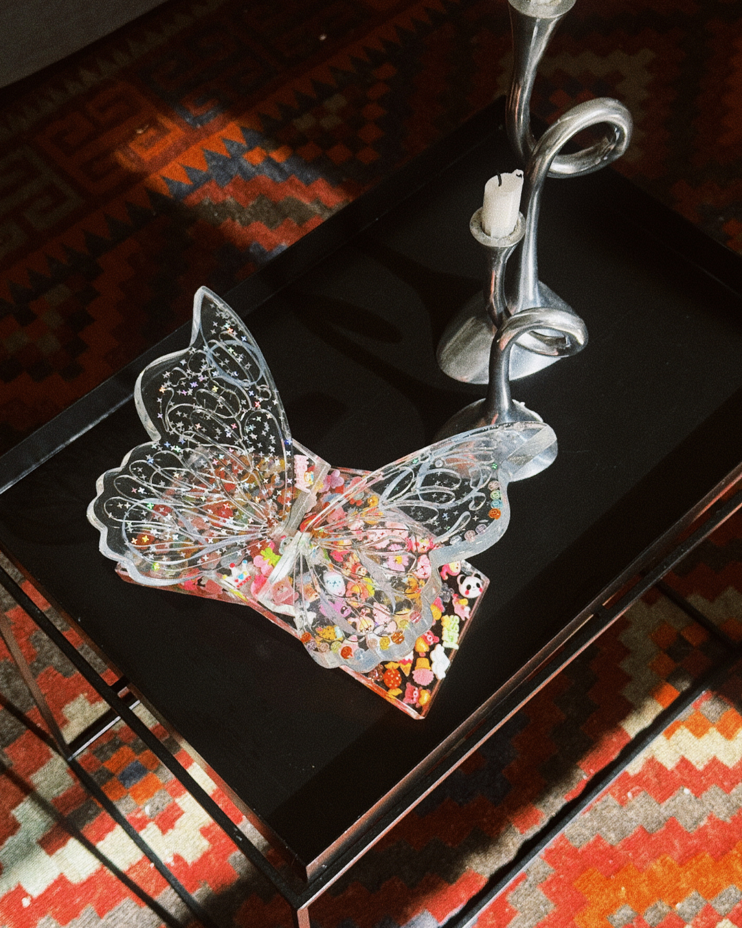 Designed to elevate your copy of Backstories (literally), this one-of-a-kind piece brings an extra layer of storytelling to your space. Thoughtfully crafted to be as steady and sturdy as it is stylish, the stand holds your book beautifully — and boldly. It features all the signature Backstories details: barbed wire transforming into baby blue lace, letter beads, glittery stars, and cheeky kawaii figures.